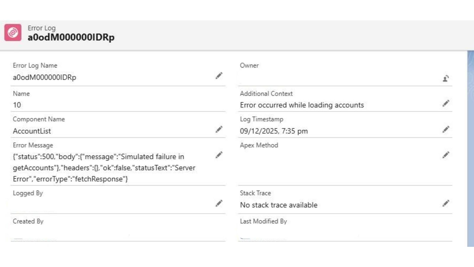 - Stack_Trace__c (Long Text Area)