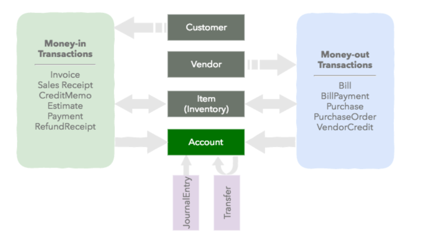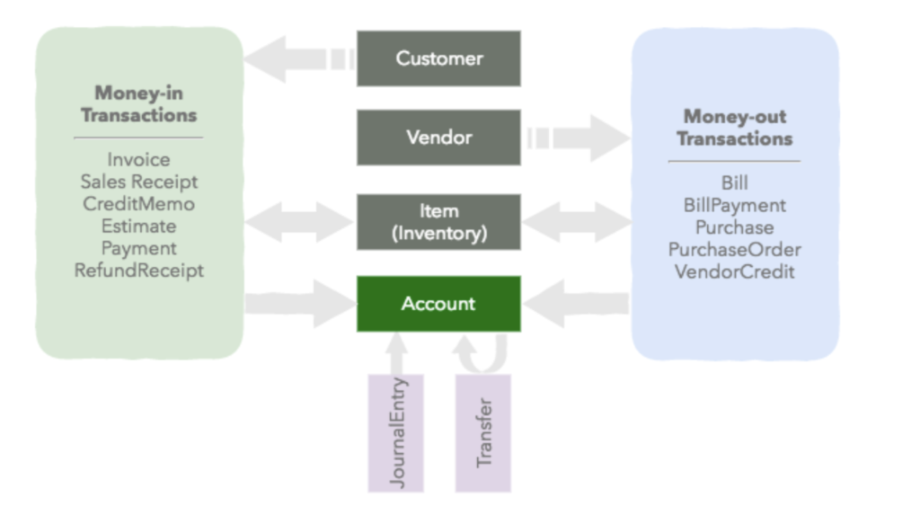 Diagram of common entities in QuickBooks, image from Intuit