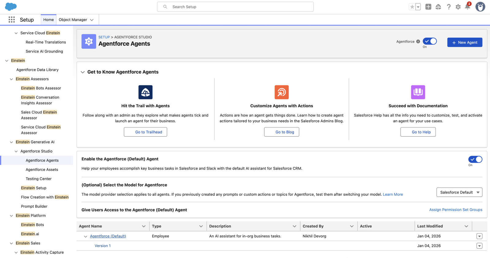 Agentforce Builder is launched directly from Salesforce Setup. There’s no separate console and no new tool to learn.