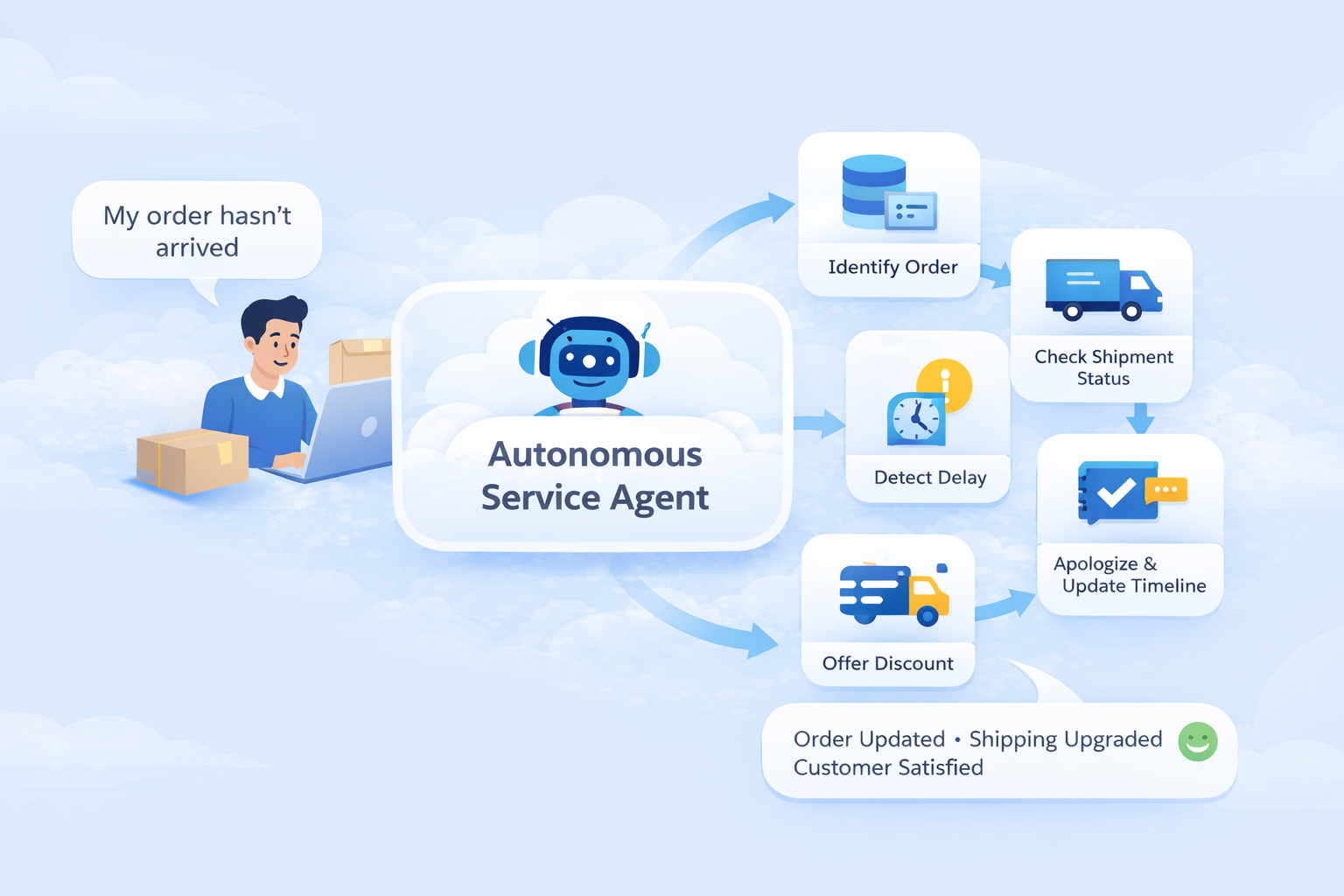 Agentforce is Salesforce’s way of bringing AI agents directly into everyday business workflows. These aren’t bots that just reply with text. Agentforce agents can understand what someone is asking, decide what needs to happen next, and then actually do something — like triggering a flow, fetching records, or summarizing data.
